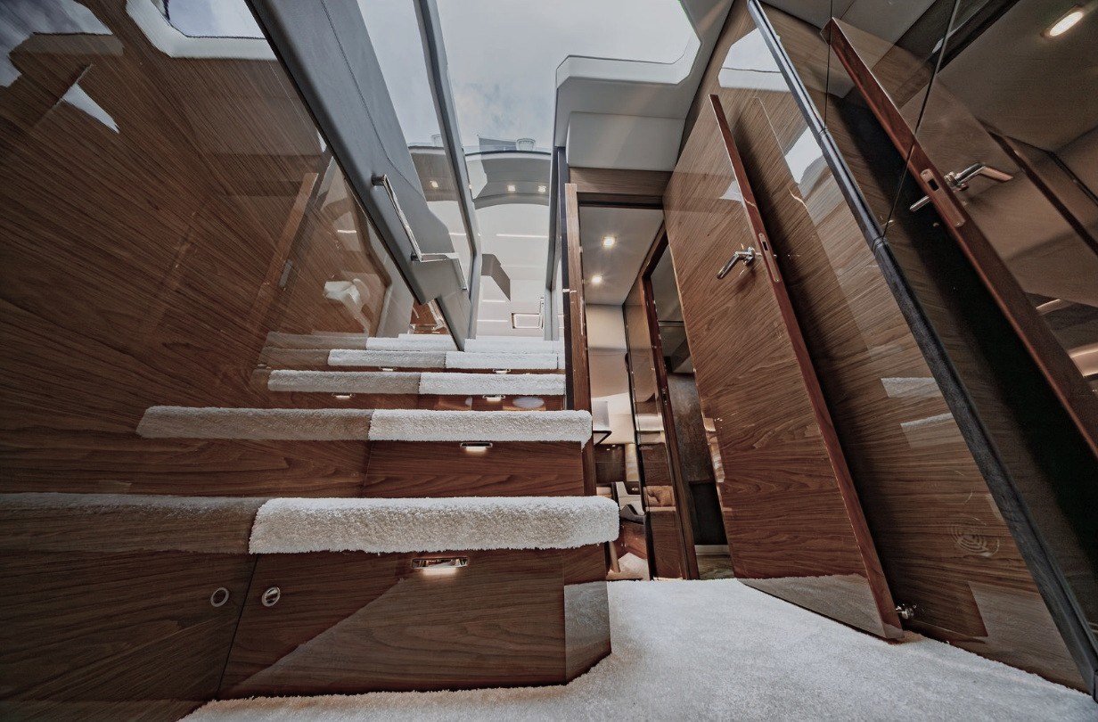 Szeroka gama rozkładów wnętrza pokładu dolnego oraz górnego daje możliwość spełnienia wszystkich wymagań zakwaterowania i funkcjonalności. 2 lub 3 kabiny na dolnym pokładzie, kuchnia i jadalnia na dole lub na górze, dowolny układ sof – dajemy armatorom możliwość stworzenia układu wnętrza według własnego uznania. Garaż na ponton, komfortowy FLY, kanapa i pokład słoneczny na dziobie z pewnością uprzyjemnią aktywny wypoczynek na morskich wodach i w słonecznych kurortach .